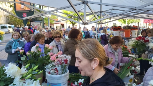 El puesto habilitado por el vivero de Fernando Ciprés en el centro neurálgico de Huesca ha registrado una afluencia inusitada desde las ocho de la mañana hasta el mediodía. Las colas eran llamativas y el personal de Viveros de Cillas de Fernando Ciprés apenas daba abasto para atender a todas las clientas, algunas con una espera cercana a las dos horas. Todo eran manos, todo billetes y a duras penas conseguía el propietario de la empresa atender el pago de las flores.