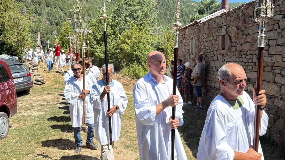 No figura entre los "top influencers" de Youtube, Instagram ni Tiktok y no lo encontraríamos en el elenco de los más seguidos de hoy, y, sin embargo, San Úrbez ha dejado tal huella que, más de mil doscientos años después, es capaz de congregar a más de quinientas personas en la romería a su santuario en Nocito. Y todos con sentido de fe y de trascendencia que no entiende de estos tiempos vertiginosos. Ese ha sido el tenor de la homilía del obispo de Barbastro, monseñor Ángel Pérez Pueyo, acompañado del párroco Rafael Gállego y el prior de la Cofradía, Óscar Ballarín.