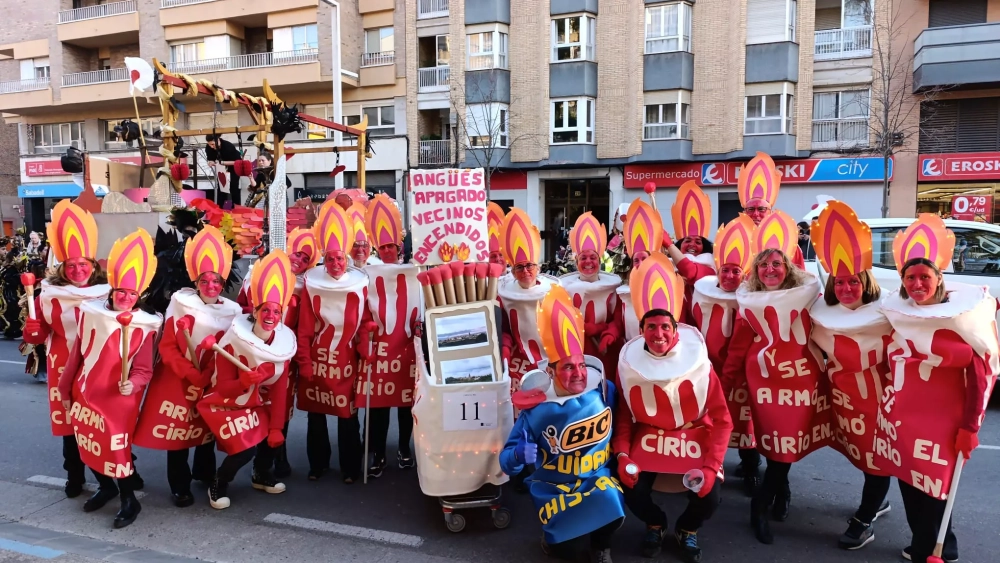 En la edición del pasado viernes, se centraron los casi treinta vecinos inscritos bajo la bandera de Mariángel Bailo en el apagón insistente e intermitente que asuela Angüés, por lo que escogieron el complemento de serie en los hogares: los cirios, que no son pascuales, sino que trascienden las épocas en muchos pueblos de La Hoya que padecen multitud de cortes de luz. El lema, "¡Y se armó el cirio!".