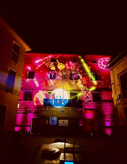 Así comenzaba el cuento que los niños y adultos de Angüés, de Velillas, de Casbas de Huesca, de Sieso e incluso de la capital que se concentraron en la plaza consistorial angüesina. Con una luminotecnia y sonido maravillosos de Roberto Latre, que siempre tira para casa, de Sandra Gella y con la colaboración del ayuntamiento, fue transcurriendo la narración proyectada sobre la fachada del edificio municipal. Las caras eran de fascinación, estaban entrando en el anuncio por la Estrella de un nuevo rey, un nuevo mesías, al que llevaron oro, incienso y mirra. Adoraron al Niño Jesús, acompañado de María, José, un buey y una mula en un humilde establo.