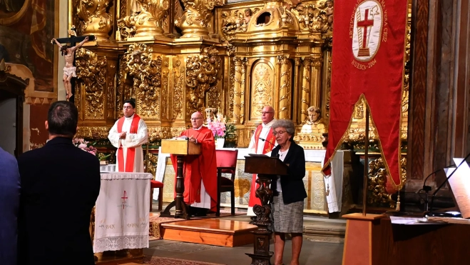 El administrador apostólico de la Diócesis recordaba la celebración de la Fiesta de la Exaltación de la Santa Cruz, "la Pascua de la Cruz", fiesta de la Archicofradía de la Santísima Vera Cruz de Huesca, en la que "recordamos a los cofrades difuntos que se durmieron en el Señor y que desde el cielo se asocian a nuesra fiesta".