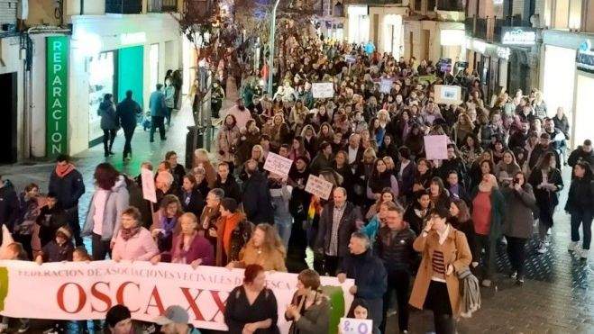 Una riada de cientos de metros de manifestantes recorre la ciudad de Huesca en una gran concentración que clama por un Feminismo para todo el Mundo para acabar contra todas las violencias de género y por la universalización de los derechos que incorpore a todas y a todos.