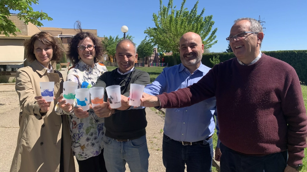 Pilar Oliván, profesora de la Escuela de Arte de Huesca, responsable de imagen gráfica de la Marcha y madre de una usuaria de Aspace Huesca, ha explicado que “este proyecto artístico nació porque este año se optó por crear un vaso de la Marcha reutilizable, para contribuir al cuidado del medio ambiente y ser más sostenibles. Tenemos que tener en cuenta que es una marcha multitudinaria y también acude mucha gente a los actos Pre Marcha del día anterior en el Palacio de Congresos. Por eso, recomendamos llevar el vaso durante la Marcha para rellenar en los avituallamientos de Banariés y la Escuela Politécnica, ya que este año no habrá botellines de agua, también por los mismos criterios de ahorro de plástico y la nueva normativa”. Además, siguiendo en la línea de sostenibilidad y reciclaje, “en la comida post marcha se entregarán platos, vasos y cucharas biodegradables”.