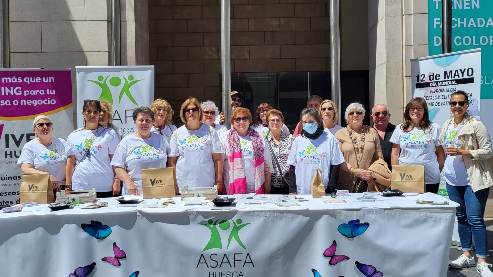 Con motivo de la celebración este 12 del mayo del Día Mundial de la Fibromialgia y del Síndrome de la Fatiga Crónica, Asafa Huesca ha salido a la calle para informar a la población sobre estas enfermedades, junto la sensibilidad química múltiple y electrohipersensibilidad, y los problemas que conllevan. Durante toda la mañana, se ha instalado en los Porches de Galicia una mesa informativa, en la que han participado numerosos integrantes de la asociación en Huesca, que han reclamado una mejor atención sanitaria en la provincia e investigación.