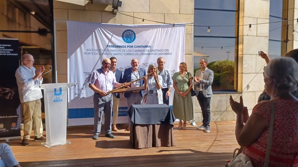 Una representación de la Asociación Amigos del Camino Santiago Huesca, invitados por la Plataforma de Asociaciones de los caminos del Norte de Cantabria, asistió el pasado fin de semana al Encuentro Nacional de estas entidades, celebrado en Santander, para recibir y custodiar durante un año el "Bordón del peregrino".