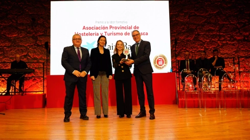 El galardón era recogido como representantes de la Asociación, por el presidente, Carmelo Bosque, la vicepresidenta de Hospedaje, Anabel Costas, y la persona encargada de gestionar los talleres durante todas las ediciones, Mariví Seral, quien se jubila tras años de dedicación incansable a estos talleres desde sus inicios.