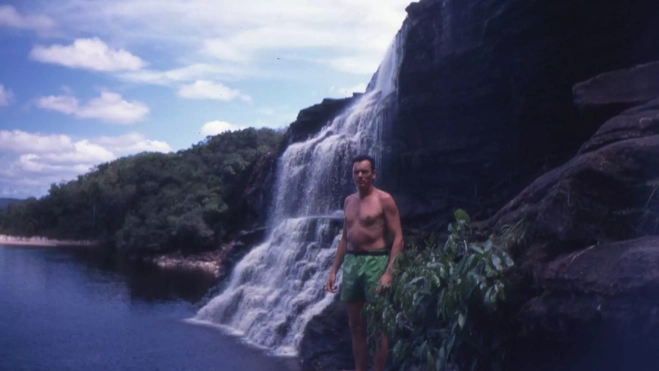 Al día siguiente podía haber marchado ya. Fuera del Salto Ángel o la laguna, lo demás tenía menor interés, pero el problema era que no había forma de salir. Sin ningún transporte me vi obligado a permanecer allí. Me puse a caminar por los alrededores del campamento pensando qué hacer. Creí que no había más vida que la del campamento. Sin embargo me topé con alguien, un indígena, que me propuso llevarme por el río en su canoa para apreciar el paisaje del parque, me mostró el río y la canoa que tenía en la orilla. Curiosamente este río si tenía un considerable caudal para ser navegado. A falta de otras opciones, pensé que era lo mejor que podía hacer, discutimos el precio y me embarqué con él.