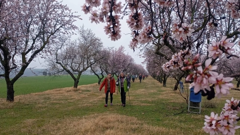 Ayerbe ha acogido este sábado la primera jornada de la Caminata en la Flor del Almendro, un evento que ha reunido a 800 personas para disfrutar de la belleza del paisaje con la floración en plenitud en la comarca y la hospitalidad de la villa, en una jornada para disfrutar del deporte, la naturaleza y la convivencia. Esta octava edición continúa mañana con incluso más inscritos, corroborando el éxito de esta convocatoria que organiza el Club Deportivo Padelante y el Ayuntamiento de Ayerbe.