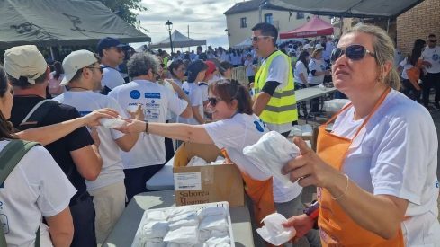 Banariés ha sido de nuevo la mejor anfitriona de la Marcha Aspace. Vecinos de la localidad ayudados por voluntarios de otros pueblos han preparado más de ocho mil bocadillos de jamón y queso entre los marchosos, además de fruta y bebidas. Desde pasadas las 11 horas y hasta las 13.30 horas han pasado todos los participantes de la camita para reponer fuerzas y afrontar el tramo final del recorrido.