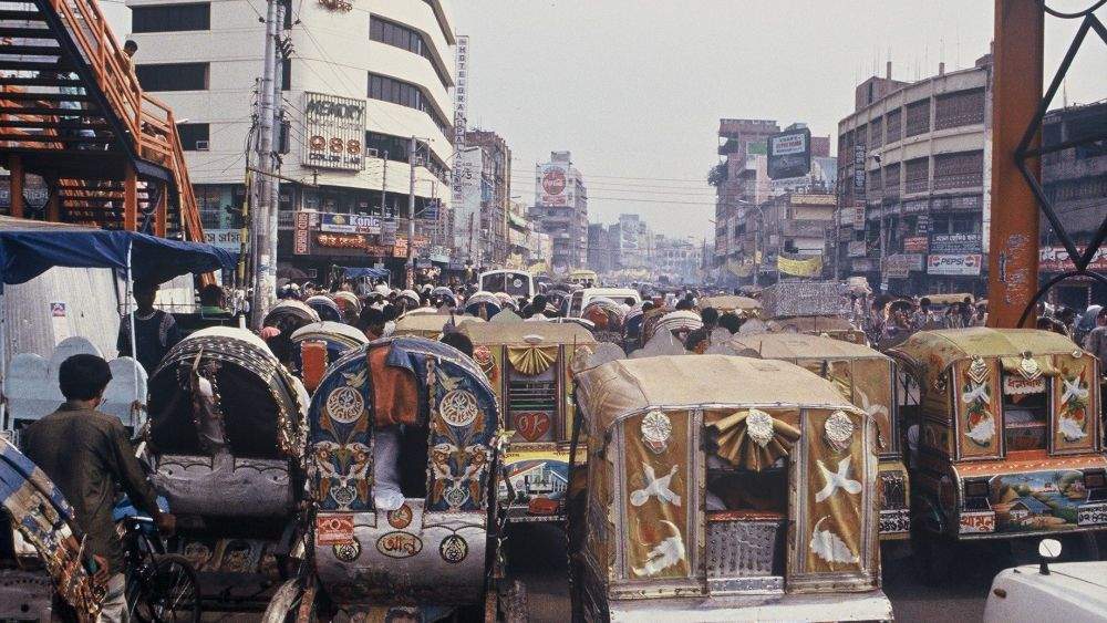 Después de llegar a Daca y buscar un hotel me fui a recorrer la ciudad. Daca es una urbe súper poblada, con un gran puerto fluvial que a través del río conecta con el mar. Es donde entran y salen todas las mercancías del país y donde más vida hay a su alrededor. Lo primero que sorprende es la enorme cantidad de rickshaws que hay en todas partes formando grandes atascos colapsando las calles, una locura. El primer día me dediqué a callejear allí donde me llevaba la corriente humana, hasta que llegué a orillas del río y la ciudad se transformó en otra marabunta, esta vez de embarcaciones con gente y mercancías de iban de un lado a otro, o simplemente de cientos de personas que cruzaban de una orilla a otra continuamente. Incluso hasta yo me embarqué en un viejo cascarón de hierro oxidado para cruzar al otro lado del río, regresando después como otros muchos locales, en una barca a remo. Todo era abrumador, pero notablemente interesante.