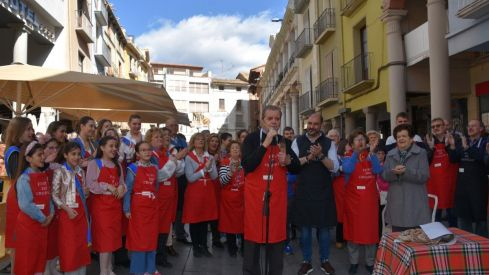 Alrededor de 16.000 crespillos se han repartido entre las miles de personas de todas las edades que se han congregado en la Plaza del Mercado de Barbastro para disfrutar de la XXVIII Fiesta del Crespillo, impulsada por el Grupo Tradiciones y el Ayuntamiento de Barbastro y en el que los primeros protagonistas han sido los dieciséis hornillos, cifra récord en la historia de esta fiesta, como lo ha sido la cantidad de dulces elaborados.