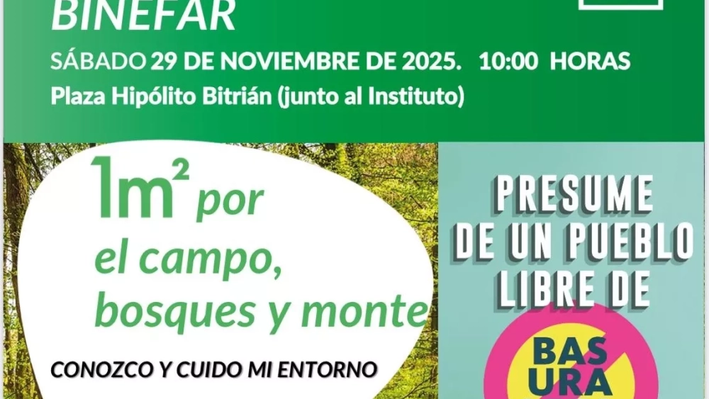 La Concejalía de Medio Ambiente del Ayuntamiento de Binéfar lanza un año más la campaña contra la ‘basuraleza’, los residuos sólidos urbanos esparcidos por zonas naturales, dentro del proyecto municipal de educación ambiental ‘Conozco y cuido mi entorno’.