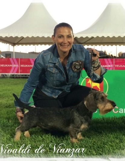 El ejemplar de la portada holandesa es Cooper de Euravall (el nombre del criador, en concreto de Valladolid). Esta maravilla ha obtenido galardones internacionales en una de las dos modalidades que entrenan con Salas. En concreto, en Belleza, que exige la morfología exacta del estándar de Alemania (de donde proceden los Teckel), en la que el jurado analiza el tipo, la musculatura, la calidad del pelo, los angulares que abren en su movimiento y la boca. Pero también, además de la similitud, se valora la obediencia al "handler" que le diríge.