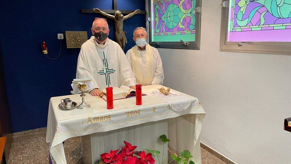 Don Ángel, junto al capellán hospitalario Jaime Mozás, volvió a celebrar misa en la capilla del centro sanitario el Día de Reyes, solemnidad de la Epifanía del Señor, tras visitar a los enfermos.