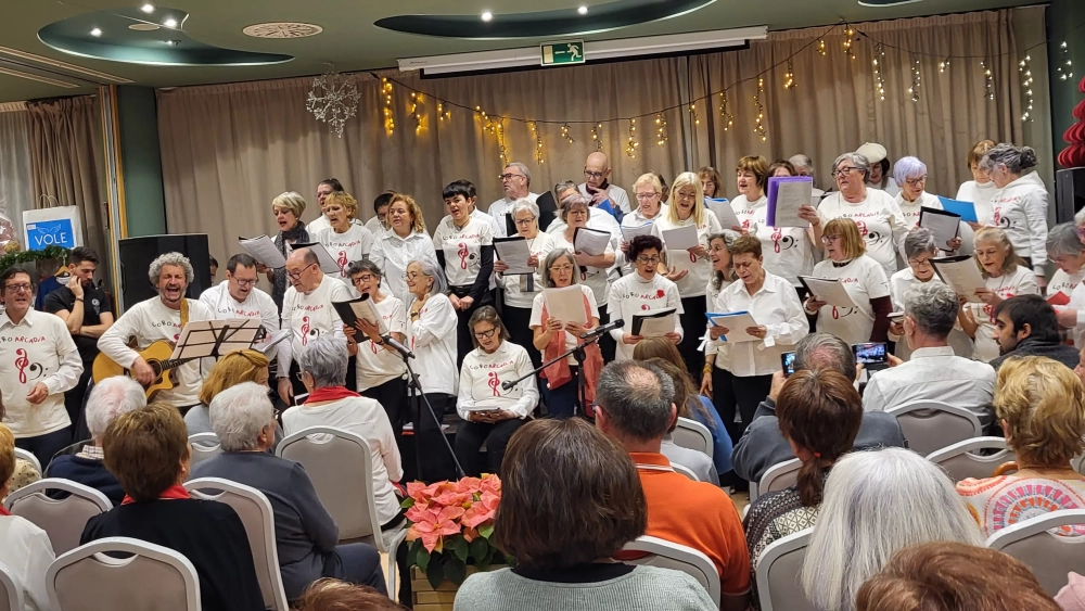 El programa artístico ha contado con la actuación de la Agrupación Folklórica Santa Cecilia, la Coral Arcadia, el grupo de canto Voces de la Alegría, dirigido por Isabel Arilla, y el grupo de baile del Hogar de Mayores del IASS en Huesca.