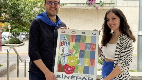 Esta es la segunda vez que María Estarán gana el concurso del cartel de fiestas mayores de Binéfar, la primera fue en 2016 con una composición dedicada a los gigantes y cabezudos de la localidad.