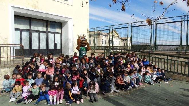 "Participó todo el centro y no estuvimos solos", señalan desde el colegio, puesto que Sarry, mascota del Club Baloncesto Peñas Huesca y las hermanas Lafarga, atletas del Club Atletismo Zoiti y ex alumnas de San Vicente, "nos acompañaron en esta estupenda mañana que aúna deporte y solidaridad".