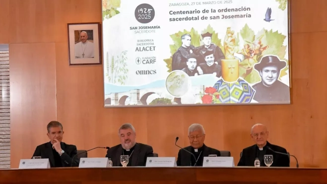 El cardenal Lazzaro You Heung-sik, Prefecto del Dicasterio vaticano para el Clero, el arzobispo de Zaragoza Carlos Escribano, el prelado del Opus Dei Fernando Ocáriz y el historiador José Luis González Gullón han intervenido en la jornada académica de apertura del programa conmemorativo del centenario de la ordenación sacerdotal de San Josemaría Escrivá, a la que han asistido en la Casa de la Iglesia unos trescientos sacerdotes y seminaristas, que continuarán el viernes con una eucaristía en la iglesia del Seminario de San Carlos, donde estudió el fundador aragonés, nacido en Barbastro en 1902.