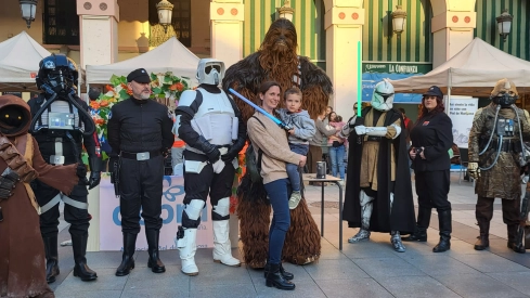La plaza López Allué de Huesca se llenó este miércoles de solidaridad en el tradicional chocolate a beneficio de DEBRA Piel de Mariposa, una cita que desde hace ocho años forma parte del calendario oscense dentro de la semana de las enfermedades raras. A lo largo de la tarde se repartieron 400 raciones de chocolate caliente acompañadas de repostería, en un ambiente familiar que sumó pintacaras, photocall solidario, sorteo de regalos y la animación de la Legión 501 – Spanish Garrison, cuyos personajes de Star Wars despertaron especial expectación entre los más pequeños, y quisieron representar la lucha contra la enfermedad.