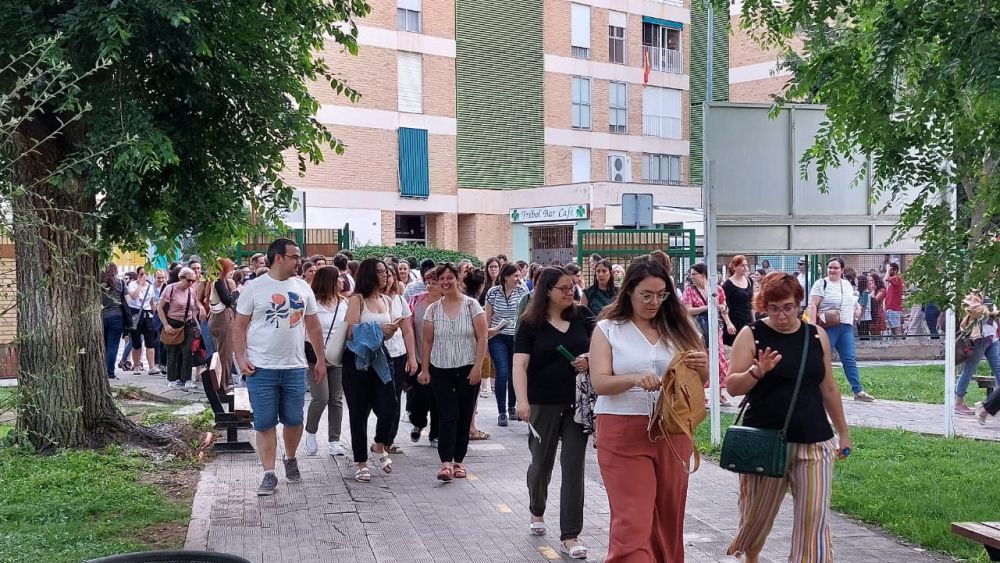 Antes de las oho de la mañana, es inusual la actividad en el recinto del IES Pirámide para una mañana de sábado. Parking completo, personal paseando junto a la entrada, militantes sindicales dando ánimos y publicidad, edades muy diversas y nervios contenidos.