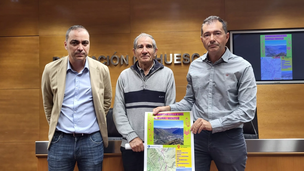 Es la segunda marcha Valle de Garona-Bentué, que ha sido presentada este jueves por el diputado de Cultura, Carlos Sampériz, el concejal de Deportes de Arguis, Miguel Ángel Sanvicente, y el presidente del Club de Montaña Javieres, Javier Cruchaga, quien ha explicado que se trata de una iniciativa “para poner en valor el valle del Garona, que está a 25 kilómetros, pero que es muy desconocido. No sólo queremos andar, sino recuperar una senda que estaba perdida”, ha añadido.