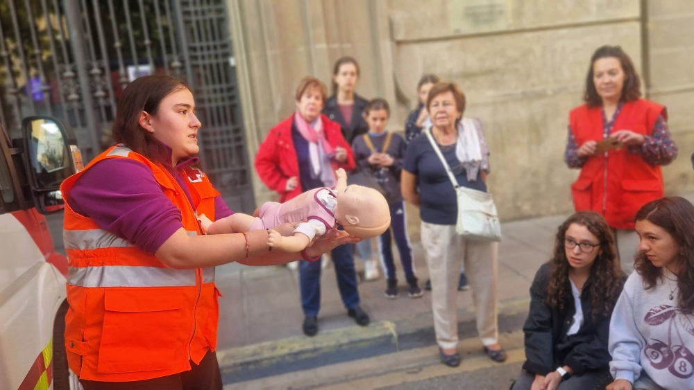 Más de 30.000 personas mueren cada año en España por una parada cardiorrespiratoria, una cifra que evidencia la magnitud de un problema ante el que la rapidez en la reacción resulta decisiva. Con esa premisa, Cruz Roja Huesca ha celebrado este jueves el Día Mundial de la Parada Cardíaca con una actividad que ha reunido a numerosos grupos de vecinos en la Plaza Navarra, donde la organización ha mostrado cómo actuar correctamente ante una emergencia de este tipo.