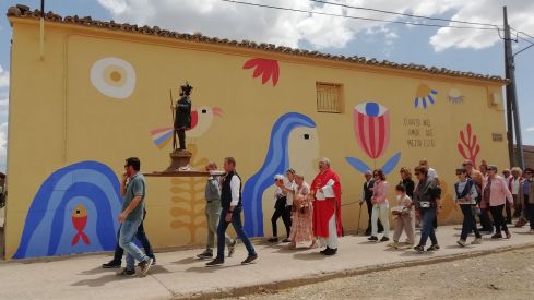 Biscarrués ha celebrado un año más la fiesta de Santa Quiteria el sábado 20 de mayo, con una romería que ha comenzaado con la subida en procesión desde la iglesia a la ermita llevando a San Isidro en peana. Al finalizar la eucaristía se han entonado los tradicionales gozos, se ha producido la bendición de términos para asegurar una buena cosecha y se ha repartido por parte del cofrade la caridad, una torta bendecida que se reparte a personas y animales para evitar la rabia. Se ha disfrutado en la puerta de la iglesia para la atenta mirada del recuperado pendón de más de 10 metros que se ha colocado en la puerta de la iglesia.