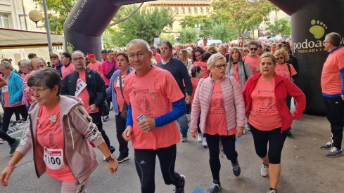 Cuatro mil personas han vestido este domingo la ciudad de Huesca de color rosa, para simbolizar su unidad contra el cáncer en una actividad que siempre desata muchas emociones.