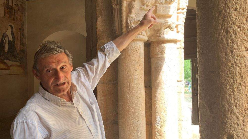 José María Cabrero, el mejor guía también del Árbol Europeo del Año en Lecina, coge su coche sin pereza para recorrer Arcusa, Almazorre, Lecina, Betorz, Hospitaled, Bárcabo, Eripol, Castellazo, Santa María de Buil, Paúles, Santa María de la Nuez, Sarsa de Surta o Morcat, o Colungo, Asque, Buera, Adahuesca, Alquézar y San Pelegrín, desde Lecina a Santa María de Buil o las Bellostas (trece núcleos nada menos) entre muchas poblaciones en las que se ha empeñado también en una labor de conservación del patrimonio eterno y también del vivo, y es que lo mismo busca recuperar una iglesia que las tradiciones más arraigadas.