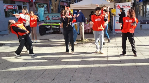 Entarachen Bosco Global llena esta mañana de Nochebuena la Plaza de Concepción Arenal de Huesca de ilusión a ritmo de danza urbana para llevar esperanza a África a través de su programa Luces por Etiopía, la acción de la ONG que permite dotar de educación y alimentación a niñas y niñas en Mekanissa y de futuro a jóvenes mujeres en la ciudad de Zway.