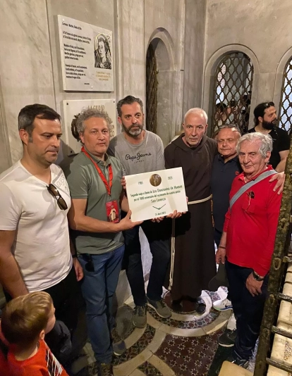 Los danzantes han conocido todos los rincones del templo dedicado a San Lorenzo en Roma y han vivido con singular emoción el relato que les han ofrecido los guías, para firmar posteriormente en el libro de la Basílica donde algunos de ellos, como Jesús Esperanza, que ya disfrutaron del dance de 1985, han escrito un emotivo mensaje en el que sobre todo ha rezumado devoción por el Santo y cariño al pontífice fallecido.