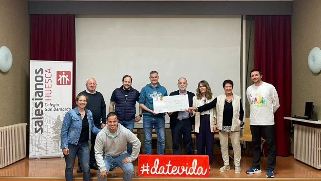 Este lunes se ha celebrado el acto de entrega de la recaudación, en el que han participado los organizadores de Date Vida, integrantes de la Cofradía Salesiana del Santo Cáliz, así como José Manuel Ramón y Cajal, presidente de la AECC de Huesca; Esperanza Ramón, presidenta de la Asociación de Donantes de Sangre del Altoaragón; y Pepe Domingo Anzano, director de la comunidad y de la Casa Salesiana de Huesca.