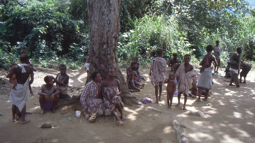 Después de un viaje excitante, llegamos a nuestro destino casi a media mañana. Desde allí el Congo se encontraba a sólo cinco kilómetros, aunque no existía una frontera física ni nada que delimitara ambas partes. El camión se detuvo en una explanada en el centro del pueblo, había gente esperando nuestra llegada y enseguida se acercaron rodeando el vehículo. Entre ellos alguien que se identificó como el alcalde del poblado. Le comuniqué mi deseo de ir a ver los pigmeos y le pregunté por un lugar para dormir. Aquí no hay hotel -dijo-, pero no hay problema, puedes quedarte en mi casa. En cuanto a ver los pigmeos, por mi seguridad, me recomendó que era mejor ir acompañado por alguien, podía perderme o que me robaran los pigmeos.