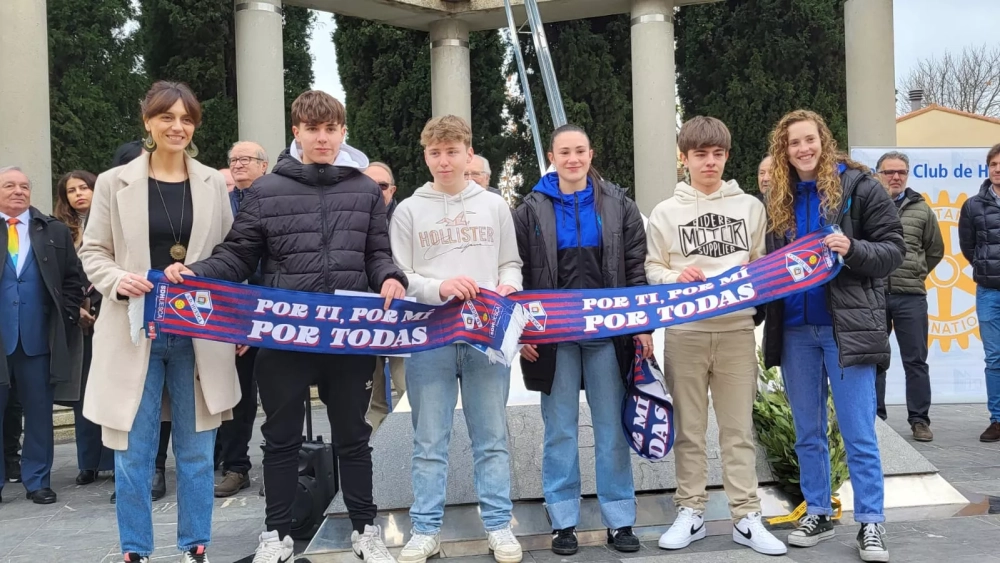 Invitada, la Sociedad Deportiva Huesca Femenina, representada por el consejero-delegado, José Luis Ortas, y la responsable de la sección, Azucena Garanto, con algunas jugadoras. Cuando han recibido un banderín de recuerdo por los rotarios, se ha escuchado entre los jóvenes dispuestos en las aceras junto al monumento la expresión "Sí se puede", en alusión a la realidad del equipo de Segunda División. Y, de paso, se ha trasladado a la paz ese mensaje: Sí se puede.