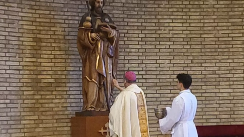 Sobre la figura del apóstol, ha calificado la estatua que iba a bendecir de "muy bonita". No hay que olvidar que "es la comunidad parroquial que se encomienda a su patrón. Esa es la gran bendición que hacemos". Por eso ha apelado a la lectura de los Hechos de los Apóstoles: "Aquellos cristianos eran constantes en escuchar la ensañanza de los apóstoles, en estar unidos, celebrar la Eucaristía y rezar. Y se preocupaban de los que no tenían nada", y vendían lo que tenían para compartirlo con los demás, "y acudían al diario al templo, partían el pan en sus casas y elevaban a Dios con el corazón agradecido. Esta es la fe y esta es la parroquia". Ha considerado que, con este acto, "estamos pidiendo al Señor que bendiga todo lo que vivimos en nuestra parroquia, porque construirmos parroquia con la Eucaristía, con la catequesis, con la ayuda a los enfermos, la asistencia a los necesitados, con Cáritas, con Manos Unidas, con el acompañamiento de los niños y los jóvenes, con la perseverancia, con los sacramentos, con la confesión... Construimos la vida cristiana y al Señor pedimos que Bendiga hoy con la estatua".
