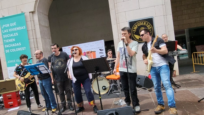 Este Diversario para no olvidar se ha cerrado con la excelente actuación del grupo Empoderados. Como solista, Lorenzo Canales, los coros de Cristina, Ángel y Juan; José Manuel Borra al teclado, Javier Estrada a la batería; y Javier Cabales y Silvia Mellado a la guitarra han puesto a bailar al numeroso público reunido en los Porches de Galicia con un sonido potente, intepretando canciones de rock y pop de los años 80 y 90.