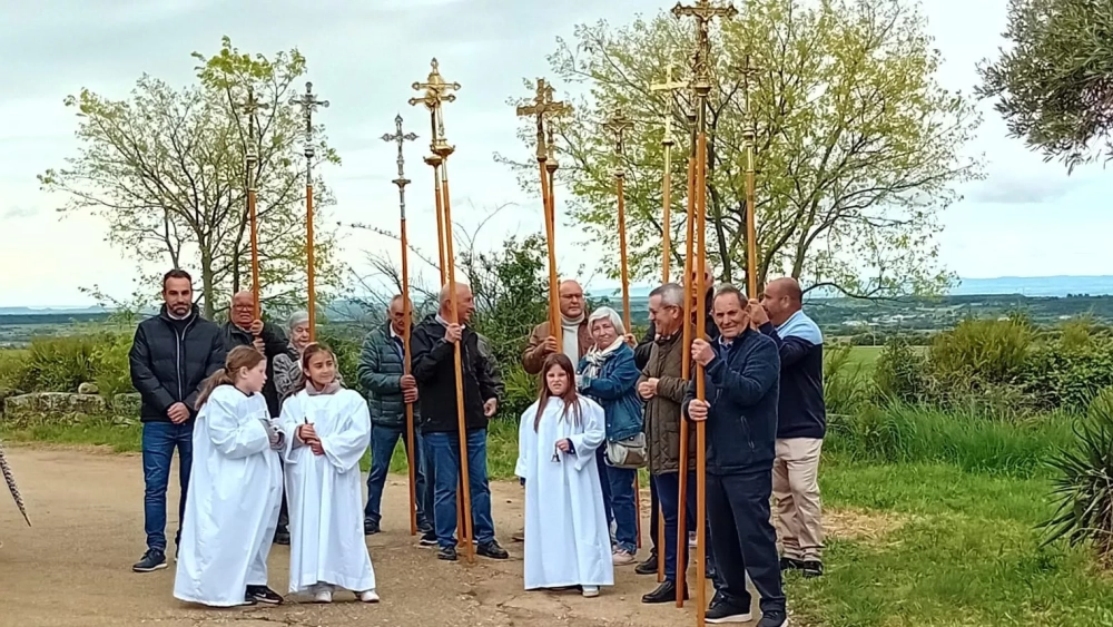 Cientos de feligreses se han congregado este 1 de mayo en torno a la Virgen del Viñedo, después de que quince minutos antes del mediodía concurrieran en el punto tradicional las cruces de Castilsabás, y de Santa Eulalia, y de Ayera y de Loporzano, de Sasa del Abadiado, de Chibluco, de Sipán y de Barluenga, de Almunia del Romeral, de San Julián de Banzo, de Bandaliés y de Loscertales. Un día revuelto exige, imprescindiblemente, una respuesta ordenada, y la ha tenido bajo la concurrencia en la Ermita al oficio presidido por el vicario general de la Diócesis, Nicolás López Congosto, acompañado por los párrocos Rafael Samper y Antonio Romero junto a otros sacerdotes del Abadiado.