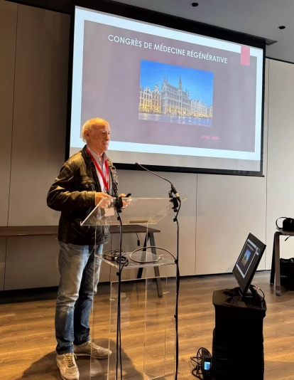 La explicación del médico oscense ha suscitado la admiración de los presentes y de la sociedad que preside Jean Hébrant. Ha participado este mediodía de 12:20 a 12:40 horas con su ponencia "Medicina Regenerativa y Patologías Vasculares".
