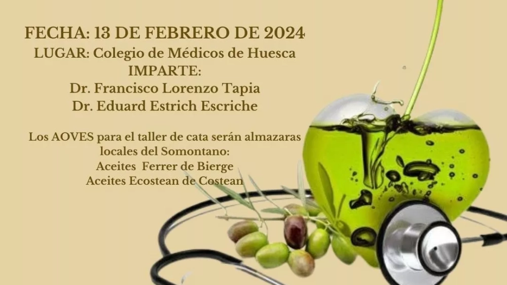 El Colegio Oficial de Médicos de Huesca ha organizado para el próximo 13 de febrero una Jornada Científico-Cultural sobre el Aceite de Oliva Virgen Extra impartida por Francisco Lorenzo Tapie y Eduard Escrich Escriche a partir de las 18:15 horas. Una sesión abierta al público habida cuenta el gran interés del tema para la gastronomía y la salud, por un lado, y la altura de los conferenciantes por otro.