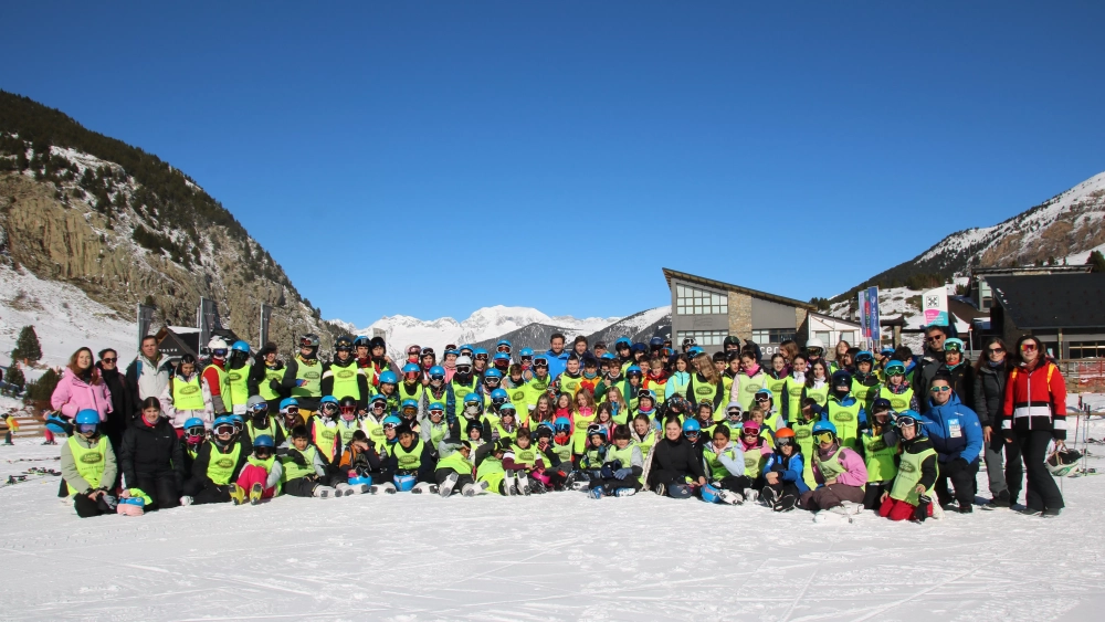 Más de 2.000 niños y jóvenes de centros escolares de la provincia se han inscrito en la nueva campaña de esquí 2025 que financia la Diputación Provincial de Huesca, cuyo presidente, Isaac Claver, ha estado conociendo el funcionamiento de los cursillos in situ acompañando a los alumnos del centro educativo de Benabarre, del IES de Alcolea de Cinca, así como del colegio Santa Ana de Monzón en Aramón Cerler. Claver ha estado acompañado de su director Gabi Mur y del coordinador de la campaña en la estación, Javier Moscoso.