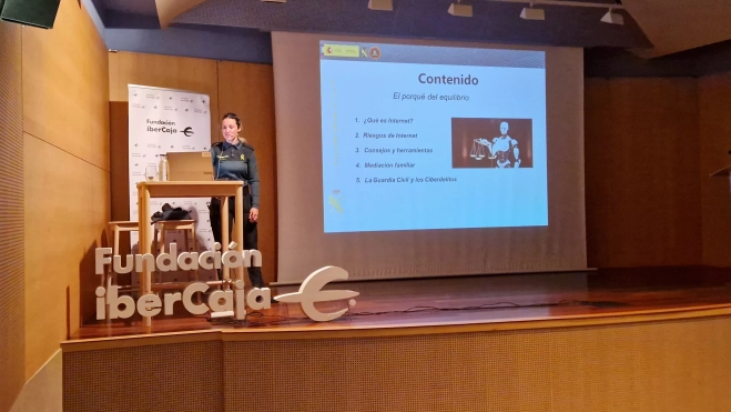 La experta ha impartido una charla este martes en la Fundación Ibercaja Huesca, en la que ha abordado el uso responsable de las redes sociales, los riesgos digitales a los que se enfrentan los adolescentes y cómo, sin ser conscientes, pueden convertirse en agresores involuntarios al compartir contenido sin saber que están cometiendo un delito.
