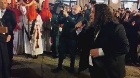 "Cada noche de Domingo de Ramos, acompañado por saetas como llantos pasea por Huesca el rey de espinas coronado! ¡Y Huesca se volvió gitana! Con un señor diferente, que es patriarca de un pueblo, con unas manos gitanas, con un sentir que es calé, sentimiento puro y bueno, y hasta llora la plaza, que al igual que Huesca se ha vuelto gitana, con ocho marchas seguidas, con una voz quebrajada, con una anda que suena a trompetas aflamencadas. Que no suenan los tambores, que suenan los viejos panderos, de esos que tocaban antes los gitanos canasteros".