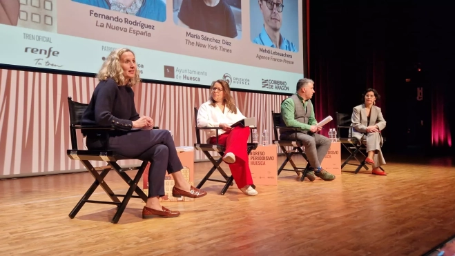 La mesa redonda titulada “Redacciones al límite: cuidar al periodista, cuidar el periodismo” ha reunido a profesionales para analizar las consecuencias de un entorno laboral cada vez más exigente. Moderada por Pilar Balet, la conversación ha contado con la participación de Mar Cabra, María Sánchez Díez y Fernando Rodríguez, quienes han coincidido en señalar que el deterioro emocional en las redacciones se ha convertido en un problema estructural del sector. Mehdi Lebouachera no ha podido asistir, como estaba previsto, pero ha enviado un mensaje a través de un vídeo.
