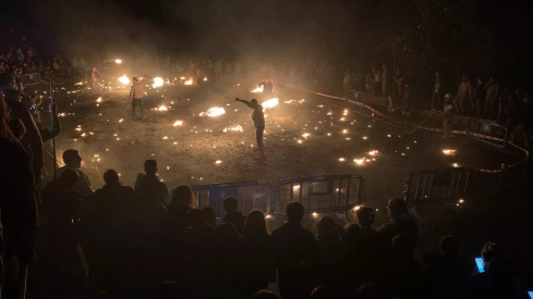 Hasta lo más alto, se han subido las fallas, se ha encendido la hoguera y prendido estas serpientes de fuego que han dibujado imposibles piruetas en el perfil de la montaña hasta llegar al pueblo.