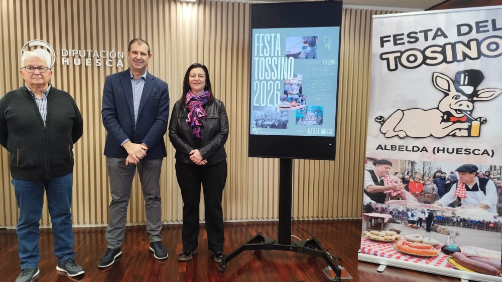 La Festa del Tossino de Albelda se ha convertido desde hace cuatro décadas en un aliciente turístico de primer orden en los albores del año porque trae hasta el Aragón del tercer milenio una de las tradiciones más esenciales para la supervivencia. La localidad literana se convierte en un aula gigante en la que adquirir los conocimientos sobre el oficio de la matacía en el que se implicaban todos los miembros de una familia. Este año se cumplen 25 años de su declaración como Fiesta de Interés Turístico de Aragón, que ha sido explicada en la Diputación por el diputado Sergio Serra, la alcaldesa, María Ángeles Roca, y el presidente de la Peña Lo Magré, Pedro Gracia. Albelda ya está preparado para recibir a miles de personas el día 25.