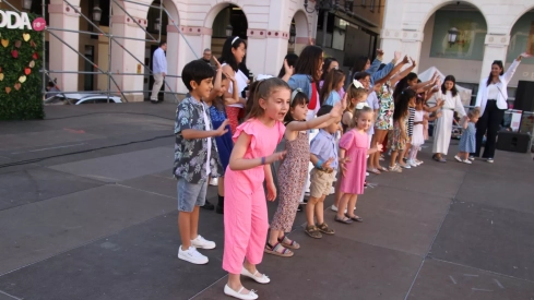 Y lo ha hecho sobre el escenarios montado en la plaza Luis López Allué con un concierto organizado por "FLIPO, arte creativo" en el que ha intervenido mucha gente menuda. Cantando y tocando instrumentos. Hemos podido escuchar "Tanto la quería", "No puedo vivir sin ti", "Smell like teen spirits" o "Flowers", entre otros temas interpretados por los jovencísimos ejecutantes.