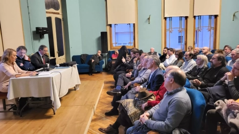 La fiducia sucesoria aragonesa, una figura exclusiva de nuestro derecho foral que ha representado garantías en los viejos usos de las casas agrarias y siempre en la seguridad para los cónyuges en el momento de la sucesión, ha sido analizada por la notaria Isabel Rufas y el economista Adolfo Aquilué en un acto organizado por el Club de Opinión Lucas Mallada, cuyo presidente, Javier Caudillo, ha presentado a los ponentes.