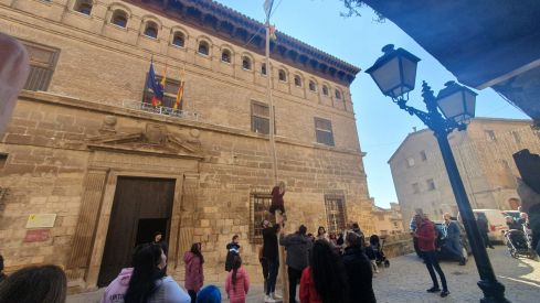 Al término del a misa se ha celebrado uno de los actos simbólicos de las fiestas de Fonz, la subida al madero en busca del gallo de peluche Blasito. El más ágil de los foncenses ha sido un año más Ángel Raso que se ha llevado un gallo de corral como premio.