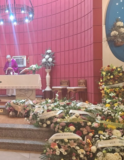 Así lo reflejaban los conjuntos florales de los Ayuntamientos de Fraga y Barbastro, donde Mari Carmen ejerció su ministerio y donde su inseparable Luis Ángel oficia su magisterio, mínister y mágister de entrega. El de la Comarca del Bajo Cinca cuyo presidente, José Javier Ferrer, estaba profundamente afectado. De Becton Dickinson, la gran empresa fragatina donde trabajó Mari Carmen. Del Colegio María Moliner cuya asociación de madres y padres fundó para mejorar la familia educativa íntegra. Naturalmente, sus compañeros de partido de VOX en Fraga, en Huesca, en Aragón, la propia presidenta de las Cortes de Aragón, Marta Fernández.