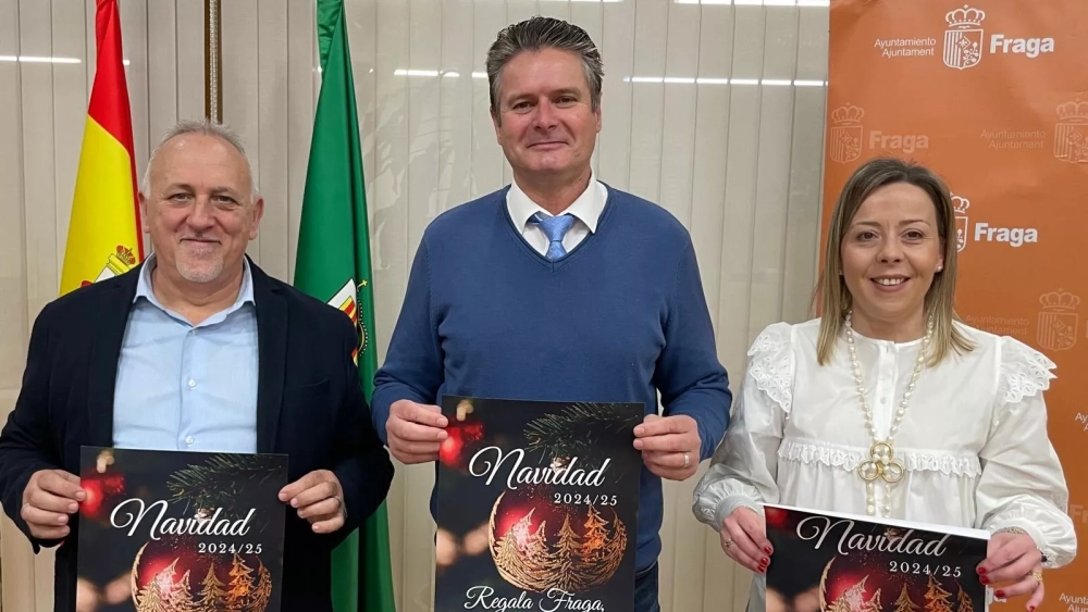 ‘Regala Fraga, regala ciudad’ es el lema de la programación que ha sido presentada este miércoles en una rueda de prensa a la que han asistido el alcalde de Fraga, Ignacio Gramún, y los concejales de Desarrollo Económico y Cultura, Javier Catalán y María José Barrafón, respectivamente.